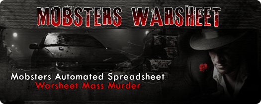 Warsheet was designed to be the easiest and most effective spreadsheet out there today. It provides all information that is needed for war. Please take a look at our demo sheet, it will show you the Mobster Name, Level, Bounty, Cash, Health, Stamina, ID, Current Death & Kill Counts. Also Includes xat integration and war room alerts.This sheet even has the ability to kill all your targets for you via the NEW mass murder tool!